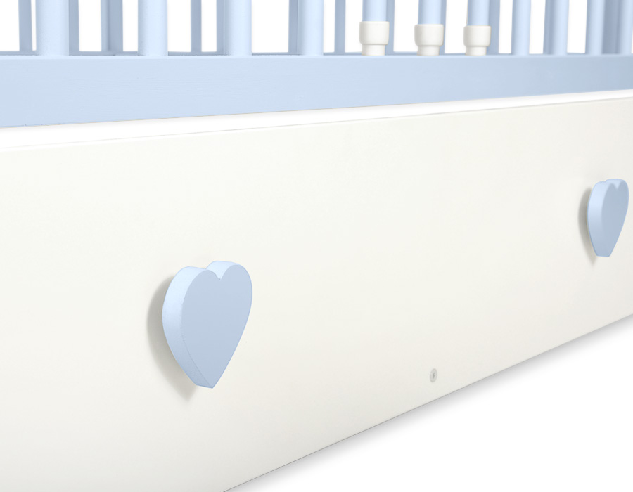 Vetolaatikko pinnasängyn alle (120x60cm) kauniilla käsityönä tehdyillä vetonupeilla. Säilytyslaatikko antaa lisää tilaa vauvan vuodevaatteille, leluille ja muille tarvikkeille, käden ulottuville.