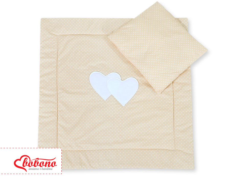 Vuodevaatesetti vaunuihin - Hanging hearts Beige Valkoisilla Pilkuilla