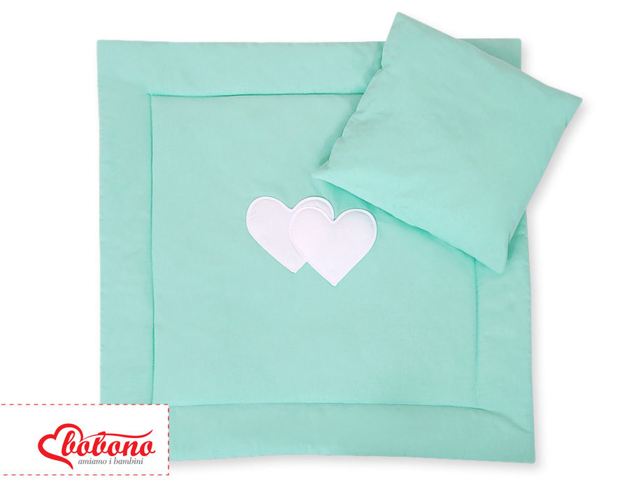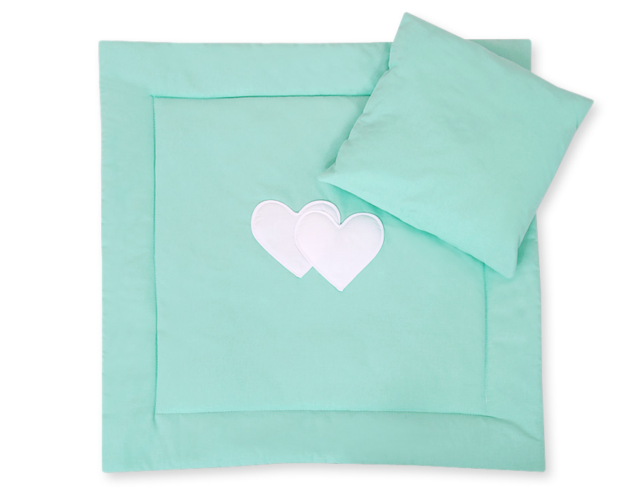Vuodevaatesetti vaunuihin - Hanging hearts MinttuVuodevaatesetti vaunuihin - Hanging hearts Minttu