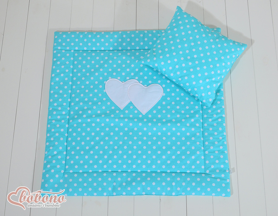 Vuodevaatesetti vaunuihin - Hanging hearts Turkoosi Valkoisilla PilkuillaVuodevaatesetti vaunuihin - Hanging hearts Turkoosi Valkoisilla PilkuillaVuodevaatesetti vaunuihin - Hanging hearts Turkoosi Valkoisilla Pilkuilla
